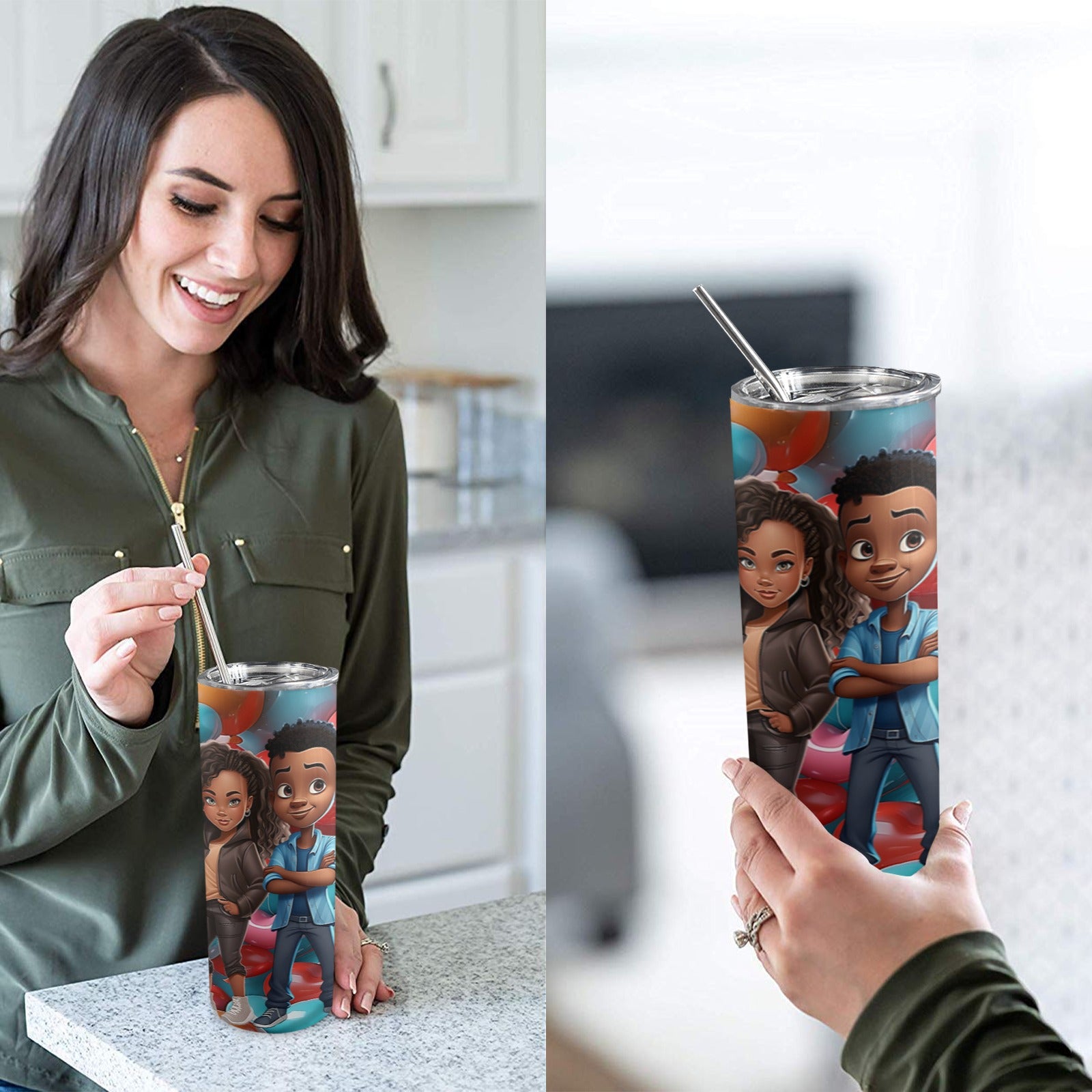 InterestPrint® 20oz Tall Skinny Tumbler with Lid and Straw