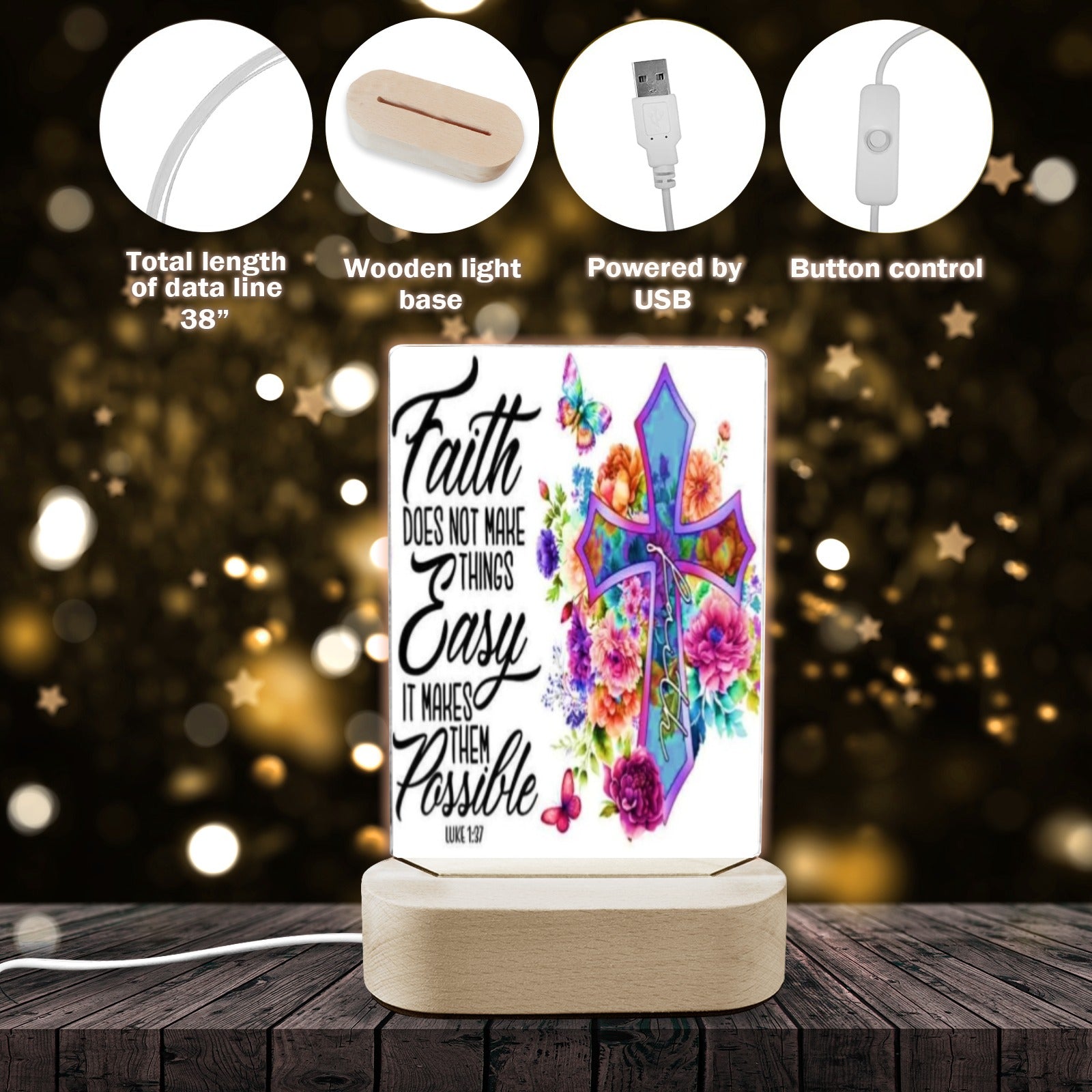 ALIM4U- Faith 1 Acrylic Photo Panel with Lighted Stand (Made in Queens)