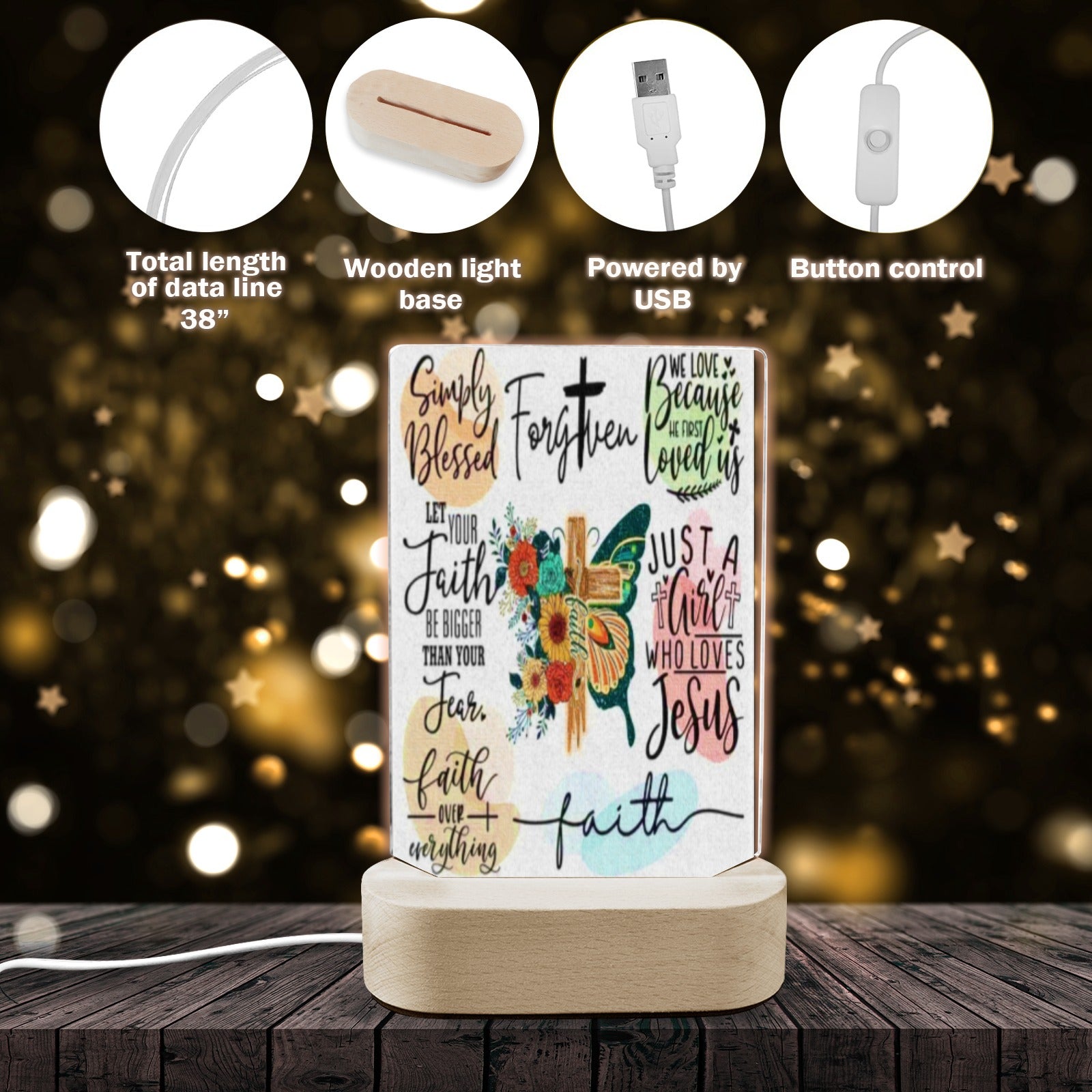 ALIM4U- Faith 4 Acrylic Photo Panel with Lighted Stand (Made in Queens)