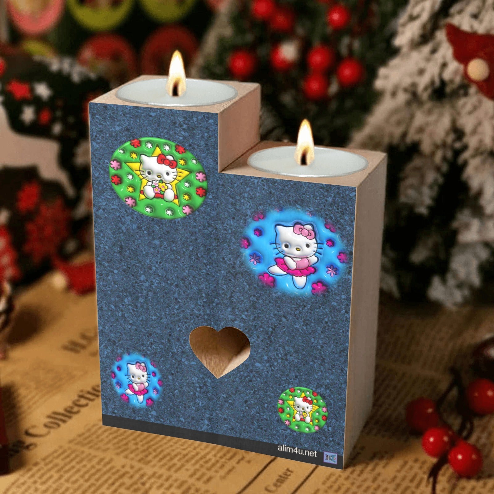 ALIM4U-KitKat Blue Wooden Heart Candle Holder