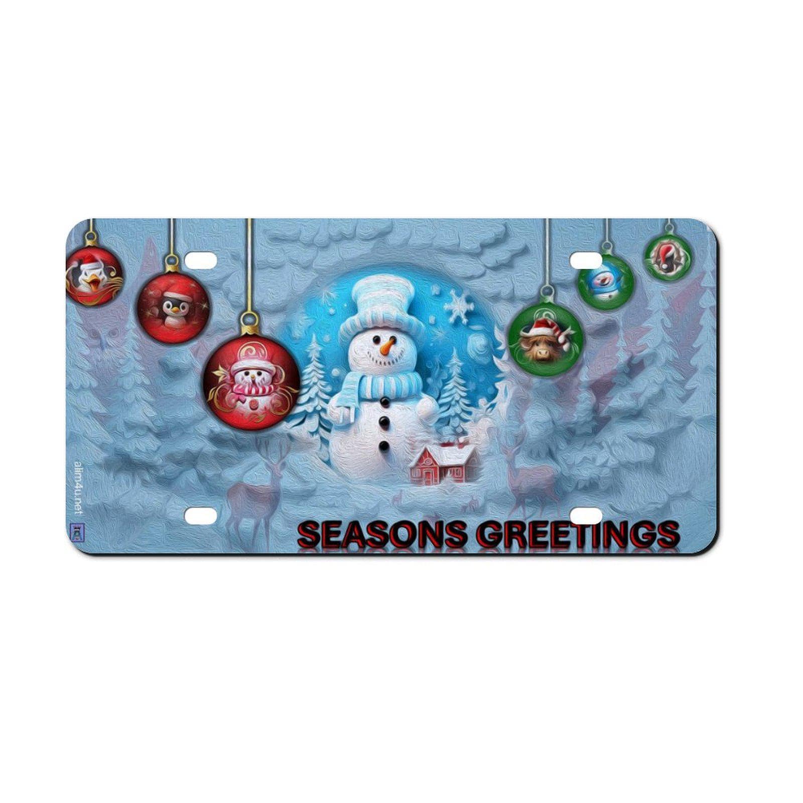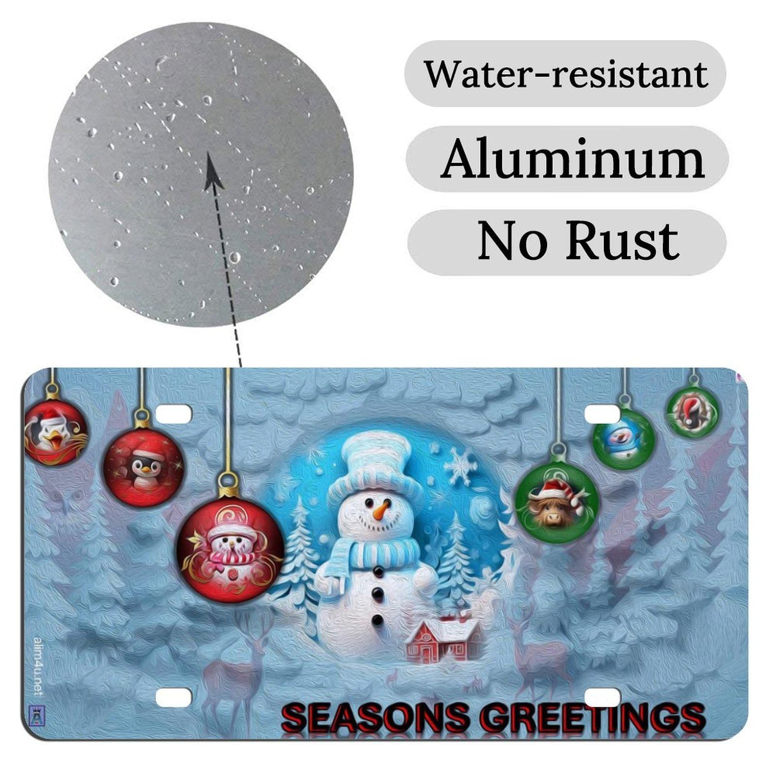 Hanging Christmas ornaments, a snow man, blue tinted snow Car License Plate-11.8”x5.9”